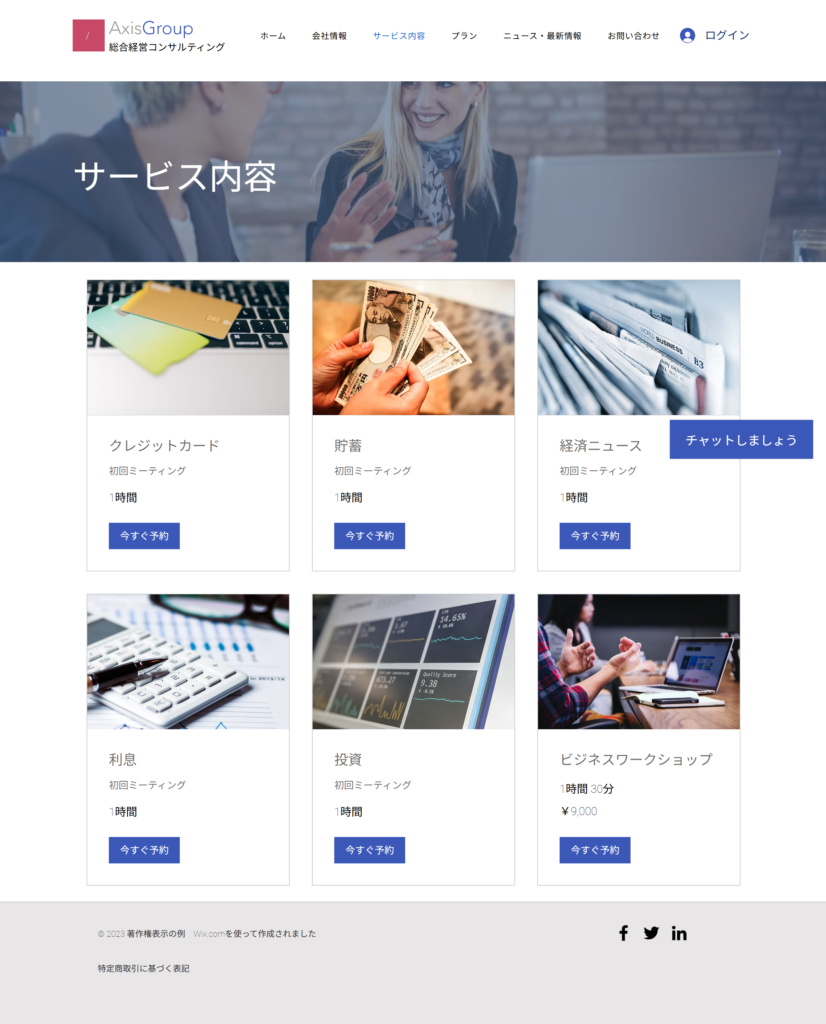 経営コンサルティング会社サイト – The Axis Group(仮想) 2025年7月1日 hp_design 概要 経営コンサルティング会社サイト(仮想) 制作時間 15時間 使用ツール WIX 担当範囲 実装 意識したこと 会社情報やサービス内容、料金プランなど欲しい情報をすぐに得られるようにカテゴリーを明確にしました。