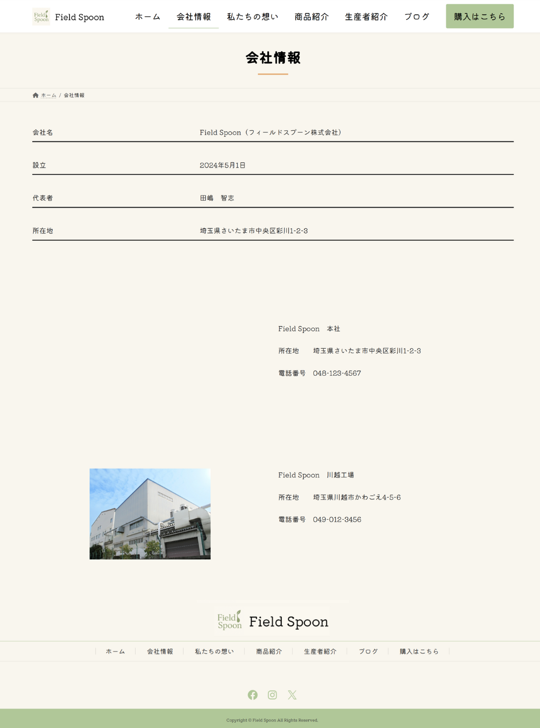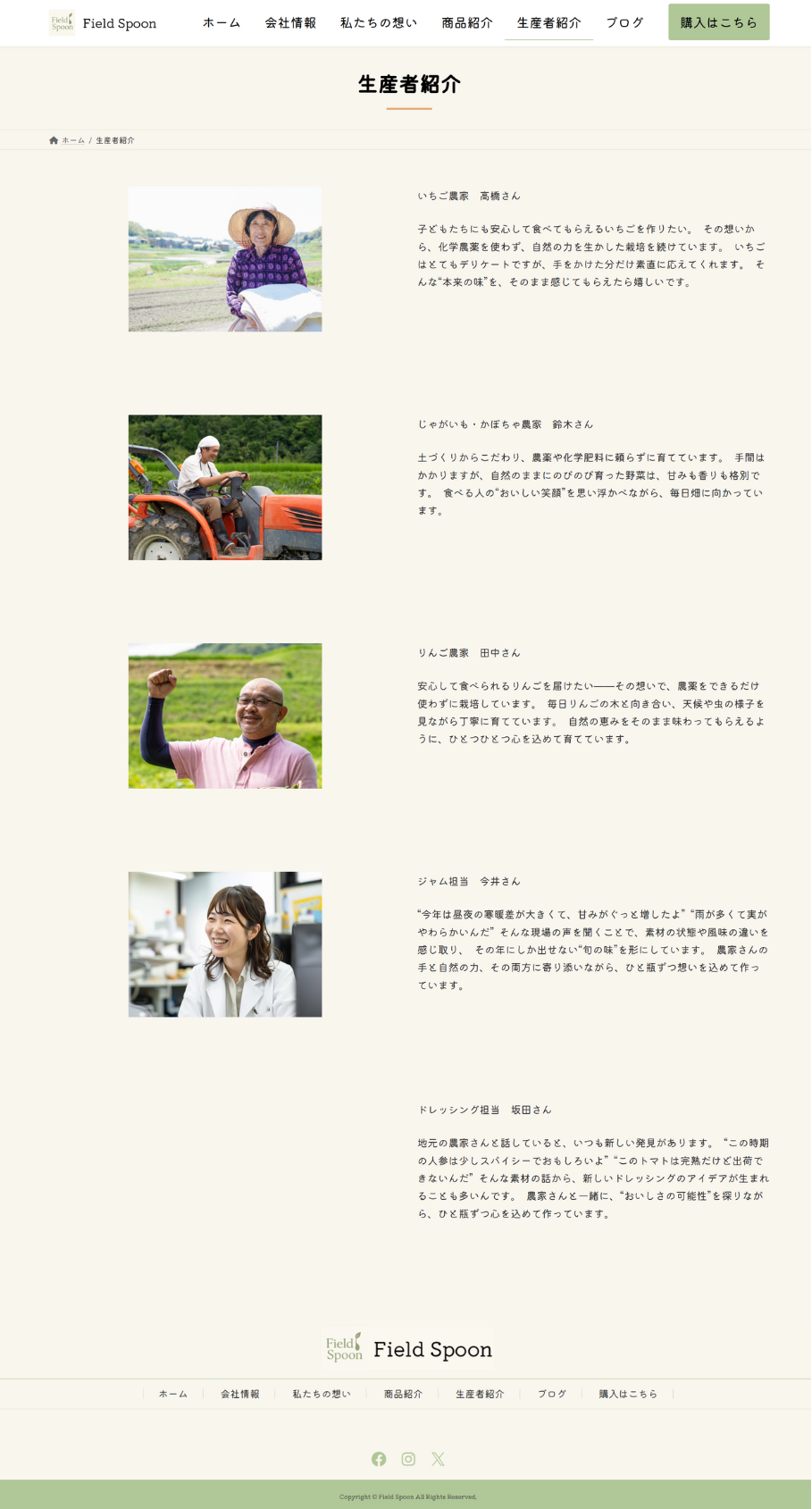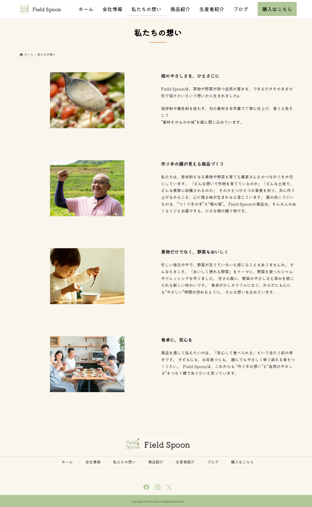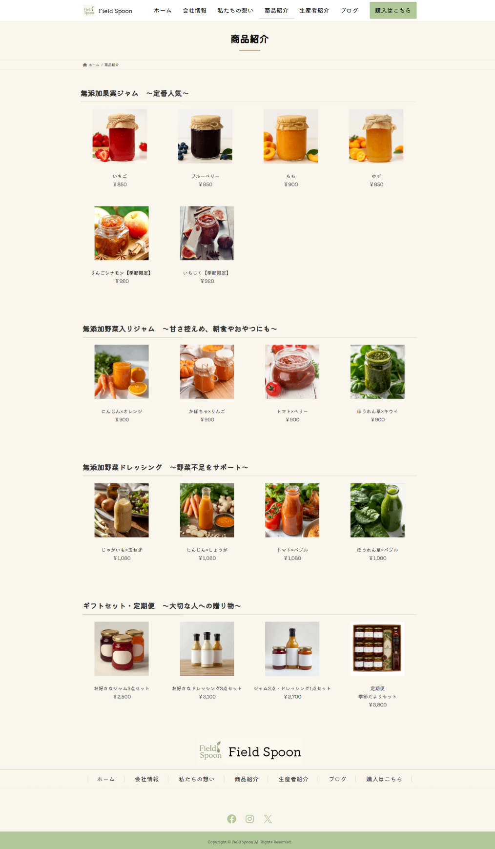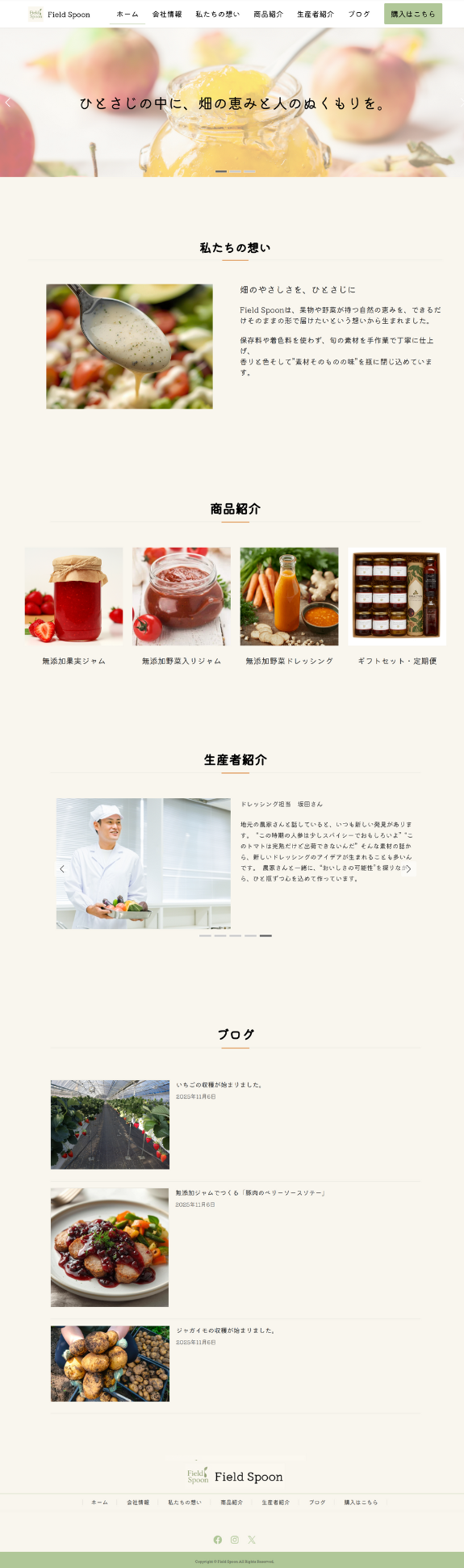 無添加ジャム・無添加ドレッシングを販売する会社Field Spoon(仮)のLP